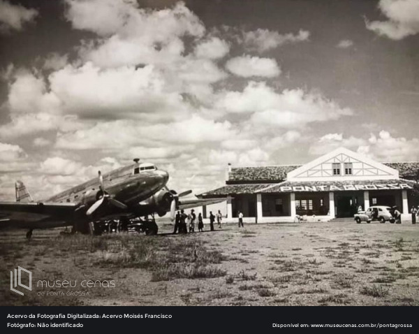 Fotografia do Aeroporto Sant’Ana, inaugurado em 1949. Pessoas na imagem, não identificadas.
