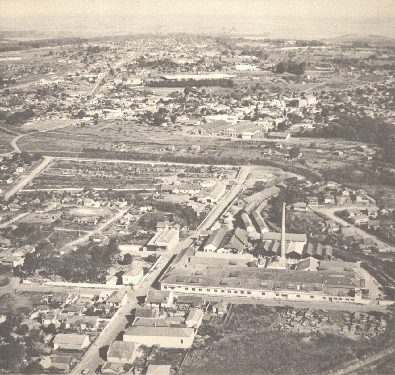 O registro faz parte do acervo de Fábio Edenei Maiginski e mostra uma visão aérea da região de Olarias em meados de 1968. Na fotografia, é possível ver no canto inferior direito a famosa chaminé das Indústrias Wagner, principal empresa do segmento industrial de Ponta Grossa naquele momento.
