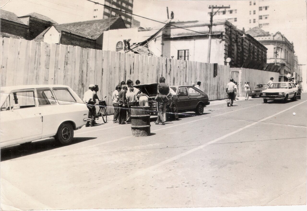 Em PG era assim… Fotografia de 1980, registrando a demolição da histórica Casa Osternack, um marco que gerou grande repercussão na época e ainda é lembrado até hoje. No local, atualmente, está a Academia Bio Ativa, em frente à Galeria da Rainha Center