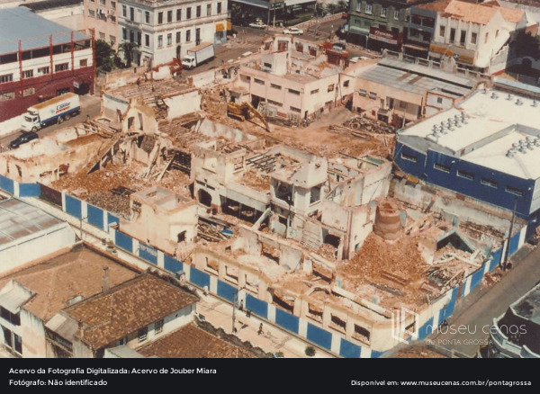 Demolição da Cervejaria Antártica, antiga Adriática na década de 1990. A Cervejaria Adriática fazia parte do cotidiano princesino desde o início do século XX, e mesmo com o pedido de tombamento o prédio foi demolido.
