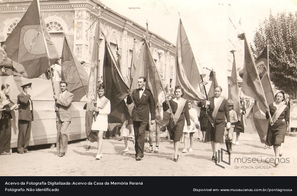 Desfile de “Dia da Pátria” do Grupo Escolar Senador Correia na Avenida Vicente Machado, na década de 1940.
