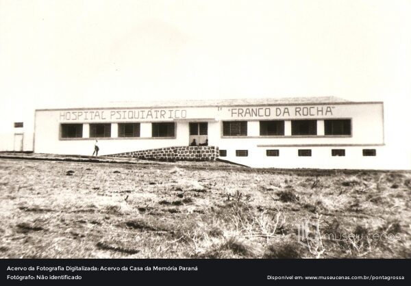 Fachada do Hospital Psiquiátrico Franco da Rocha, inaugurado em 1º de setembro de 1967. Ponta Grossa, por exemplo, foi a quarta cidade do estado a receber um hospital que ofertava tratamento psiquiátrico. A foto em questão é de algum momento da década de 1970. O Hospital anunciou o encerramento de suas atividades em 10 de novembro de 2004