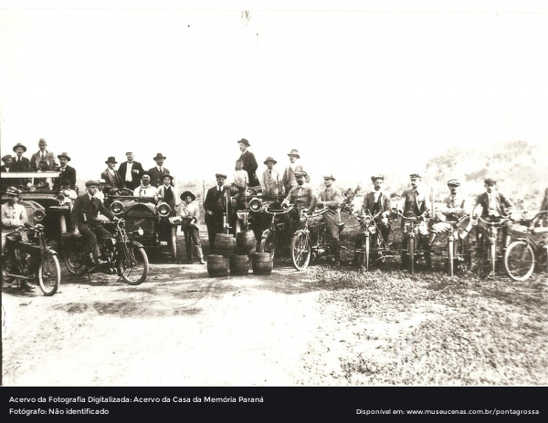 Moto Club Ponta Grossa na década de 1910. Na foto é possível identificar o Paulo Lange e Ricardo Kossatz. Registro do ano de 1913.