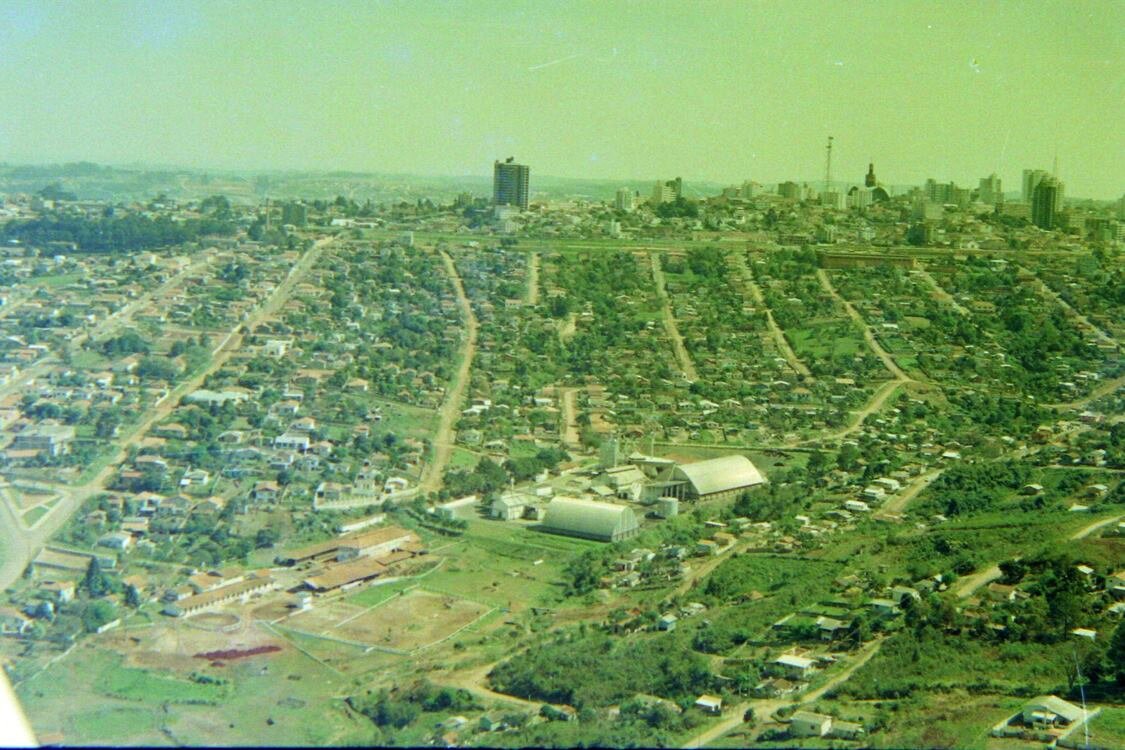 Um registro aéreo datado do ano de 1995 que mostra o bairro de Olarias, já amplamente povoado. O nome do bairro vem do fato da região concentrar, entre meados do século XIX e primeira metade do século XX, uma grande quantidade de olarias, oficinas onde eram fabricadas peças de cerâmica, como telhas, atividade industrial que era bastante demandada nos Campos Gerais naquele tempo.