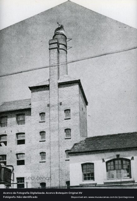 Fotografia do pátio da cervejaria Adriática. Inaugurada no início do século XX, a empresa se tornou conhecida e recebeu prêmios nacionais por conta de seus produtos que eram as cervejas e as gasosas, porém seu produto mais conhecido foi a cerveja Original, comercializada até os dias atuais pela Ambev.