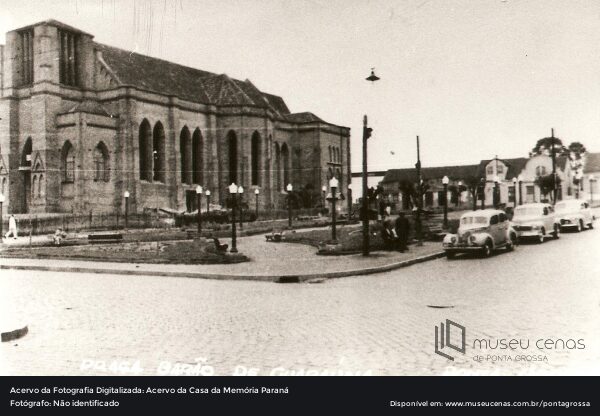 Praça Barão de Guaraúna e Rua Saldanha Marinho, ao fundo está a Igreja Sagrado Coração de Jesus, mais conhecida como “Igreja dos Polacos” ou “Igreja Polonesa”. Foto da década de 1940.
