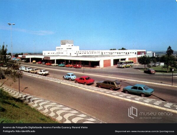 Fotografia da antiga Rodoviária Municipal, na década de 1980, demolida no ano de 2007, para dar lugar a nova. Acervo Família Guaracy Paraná Vieira.