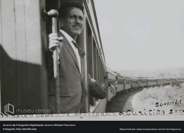 Torcedores do Opérario Ferroviário indo de trem até Curitiba, para acompanhar o jogo do time. Nesse dia, o time venceu o rival por 2×0. Registro da década de 1960, mais precisamente 27/11 de 1961.